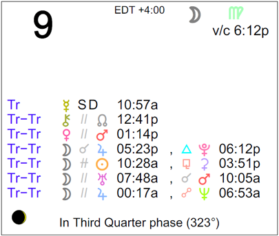 If you’re astrologically inclined and interested in the details of the Astrology of today, here are some of the factors considered in the forecasts (for the astrology of the week, see This Week in Astrology):
