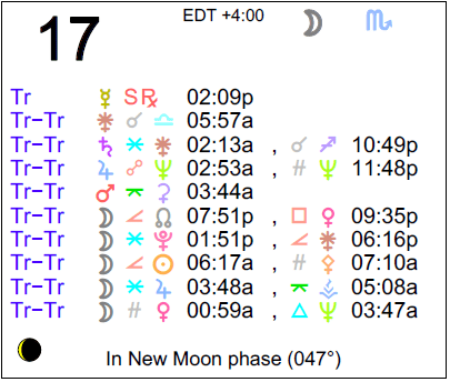 If you’re astrologically inclined and interested in the details of the Astrology of today, here are some of the factors considered in the forecasts (for the astrology of the week, see This Week in Astrology):