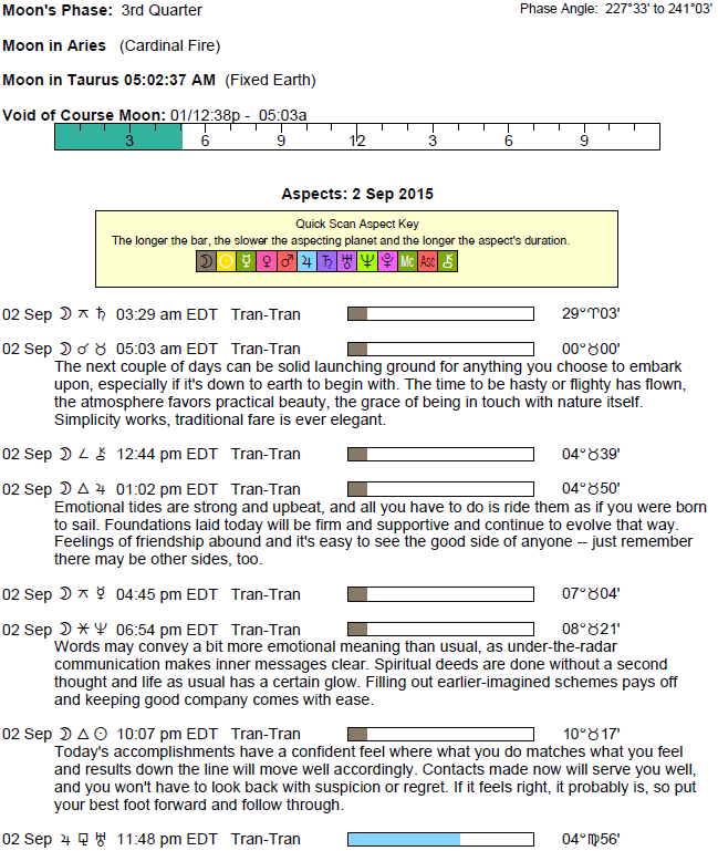 - The Moon is in Taurus from 5:01 AM forward (until Friday, September 4th, at 7:47 AM).