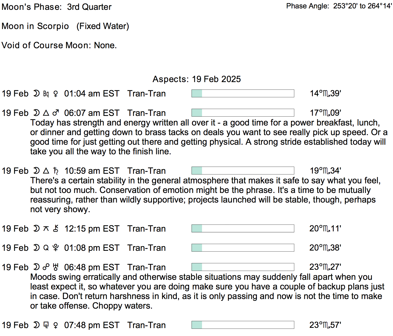 If you’re astrologically inclined and interested in the details of the Astrology of today, here are some of the factors considered in the forecasts: