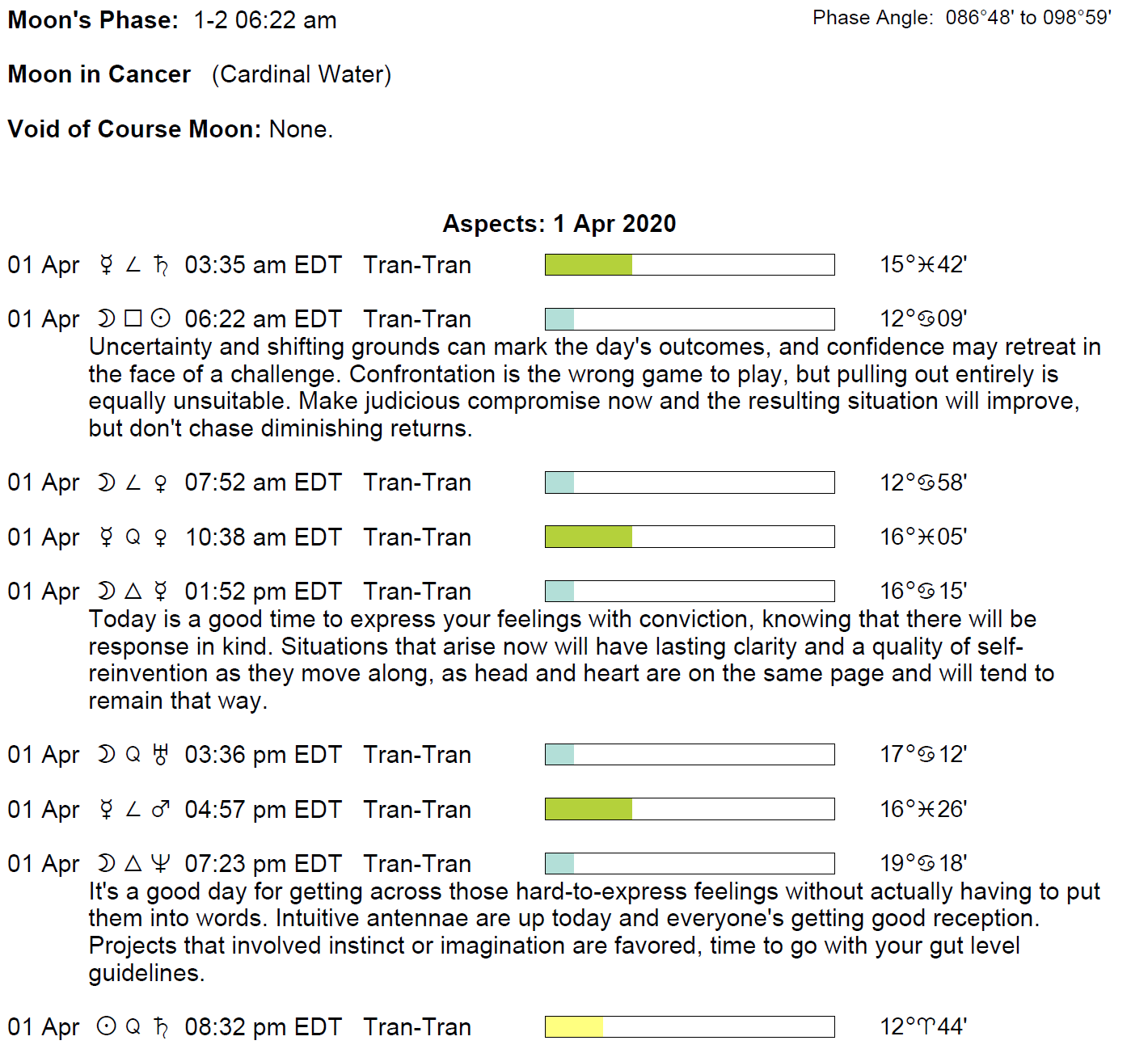 If you’re astrologically inclined and interested in the details of the Astrology of today, here are some of the factors considered in the forecasts: