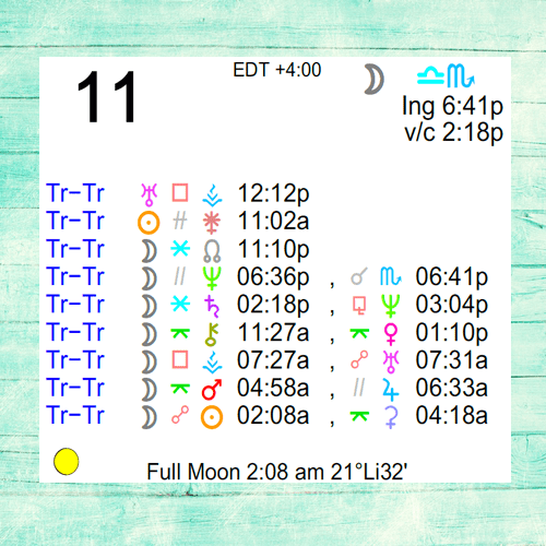 - The Full Moon occurs early today (at 2:08 AM) in the sign of Libra.