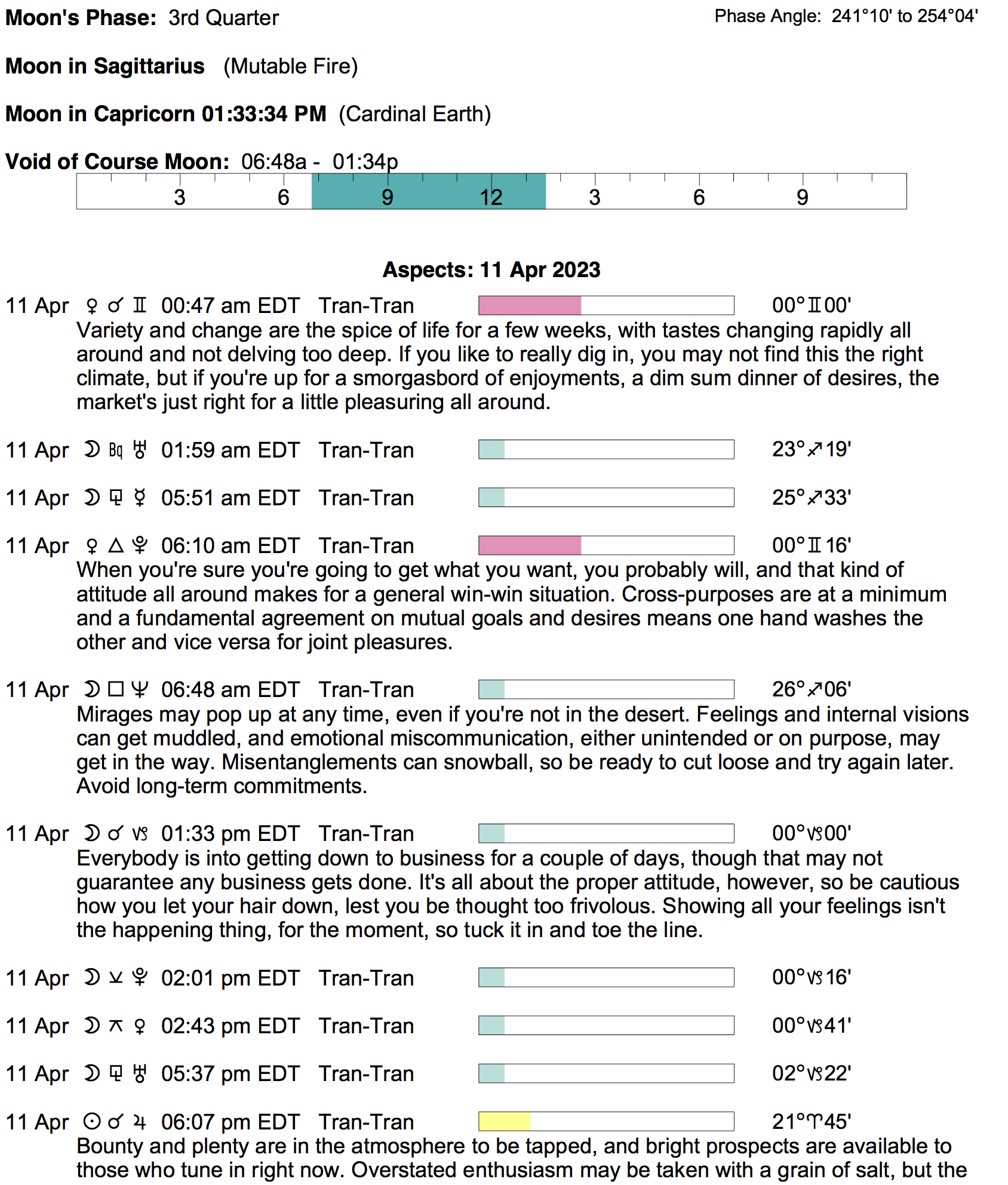 If you’re astrologically inclined and interested in the details of the Astrology of today, here are some of the factors considered in the forecasts: