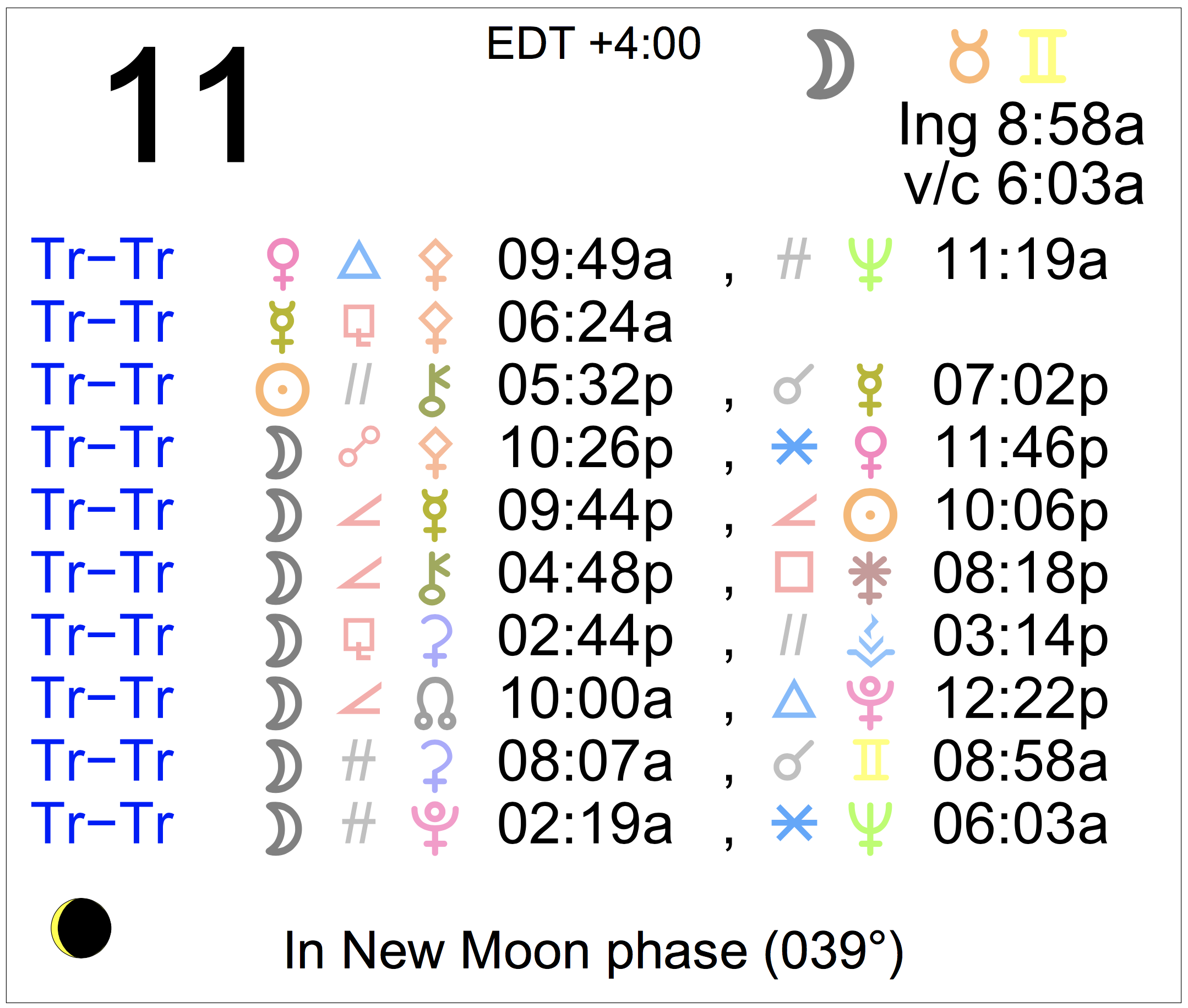 - A void Moon period occurs today from 6:03 AM to 8:58 AM.