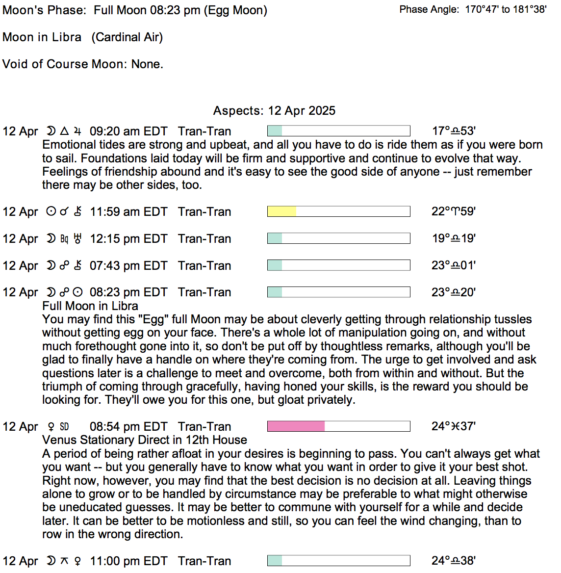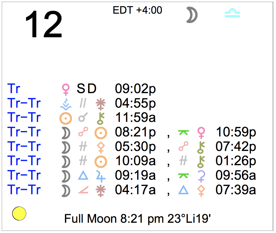 - The Full Moon occurs today at 8:21 PM in the sign of Libra.