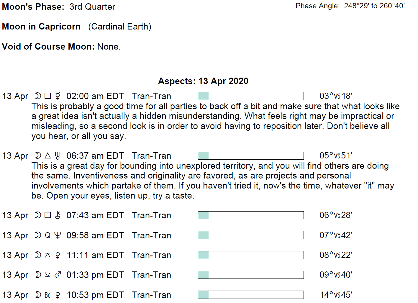 If you’re astrologically inclined and interested in the details of the Astrology of today, here are some of the factors considered in the forecasts: