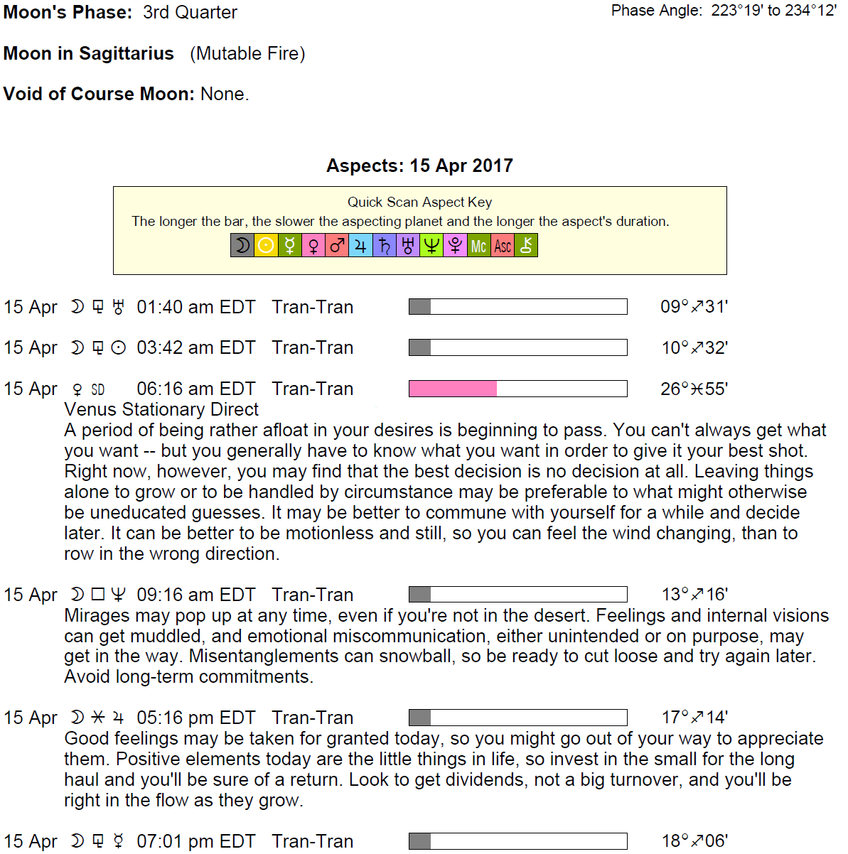 If you’re astrologically inclined and interested in the details of the Astrology of today, here are some of the factors considered in the forecasts: