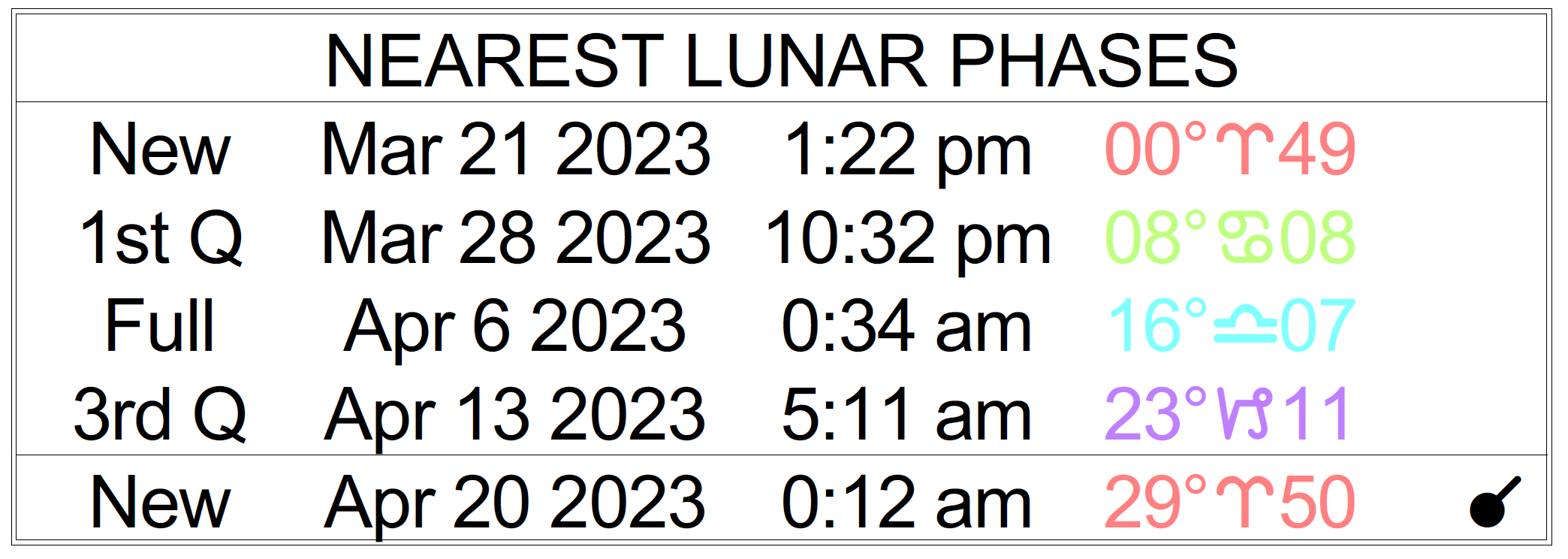 The purple marker above shows where we are in the current moon phase cycle.
