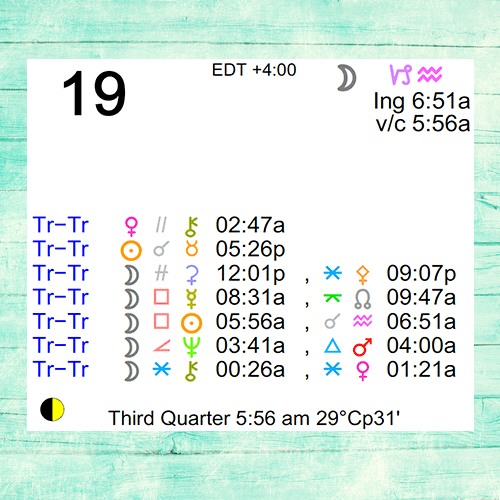 - The Moon is void from 5:56 AM to 6:51 AM.