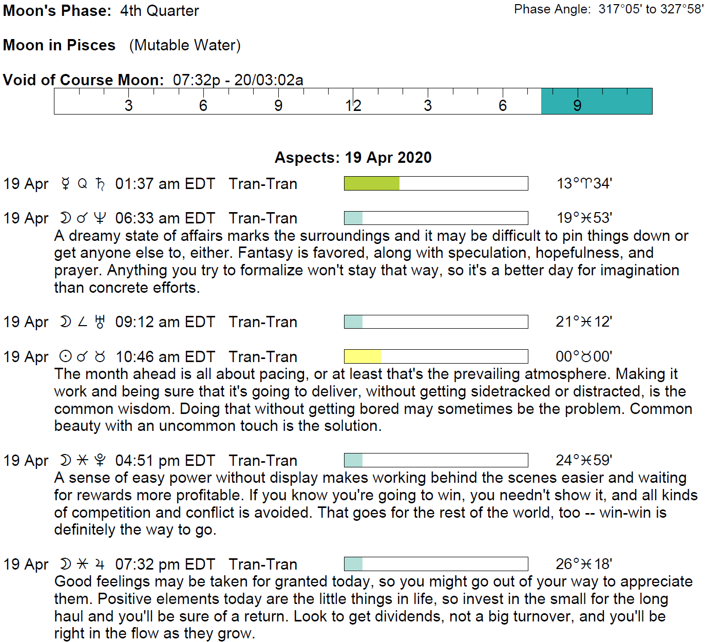 If you’re astrologically inclined and interested in the details of the Astrology of today, here are some of the factors considered in the forecasts: