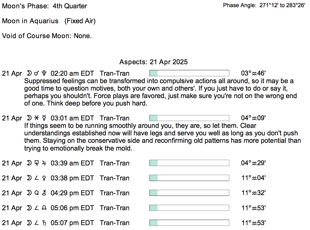 If you’re astrologically inclined and interested in the details of the Astrology of today, here are some of the factors considered in the forecasts: