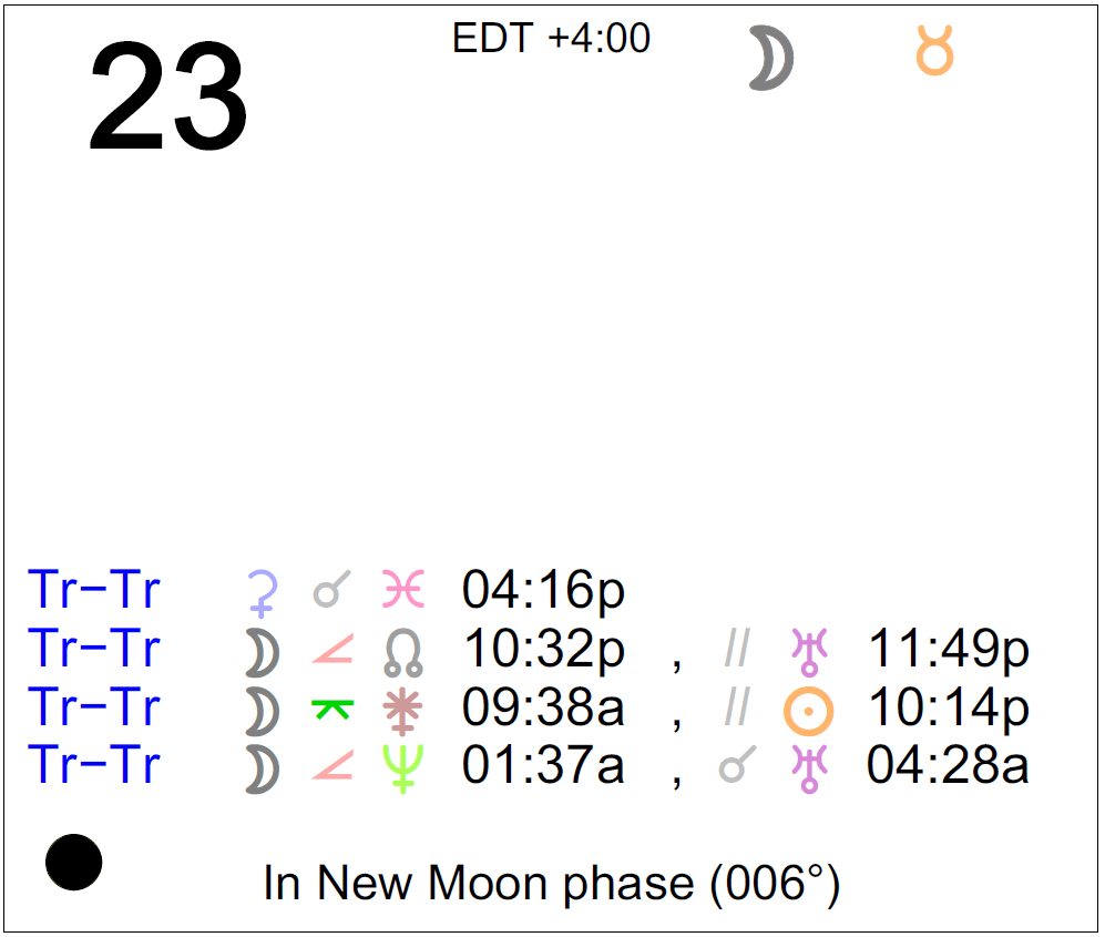 - The New Moon occurred last night in the sign of Taurus.