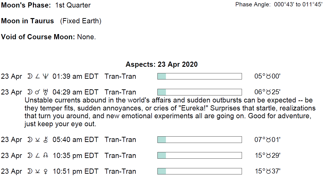 If you’re astrologically inclined and interested in the details of the Astrology of today, here are some of the factors considered in the forecasts: