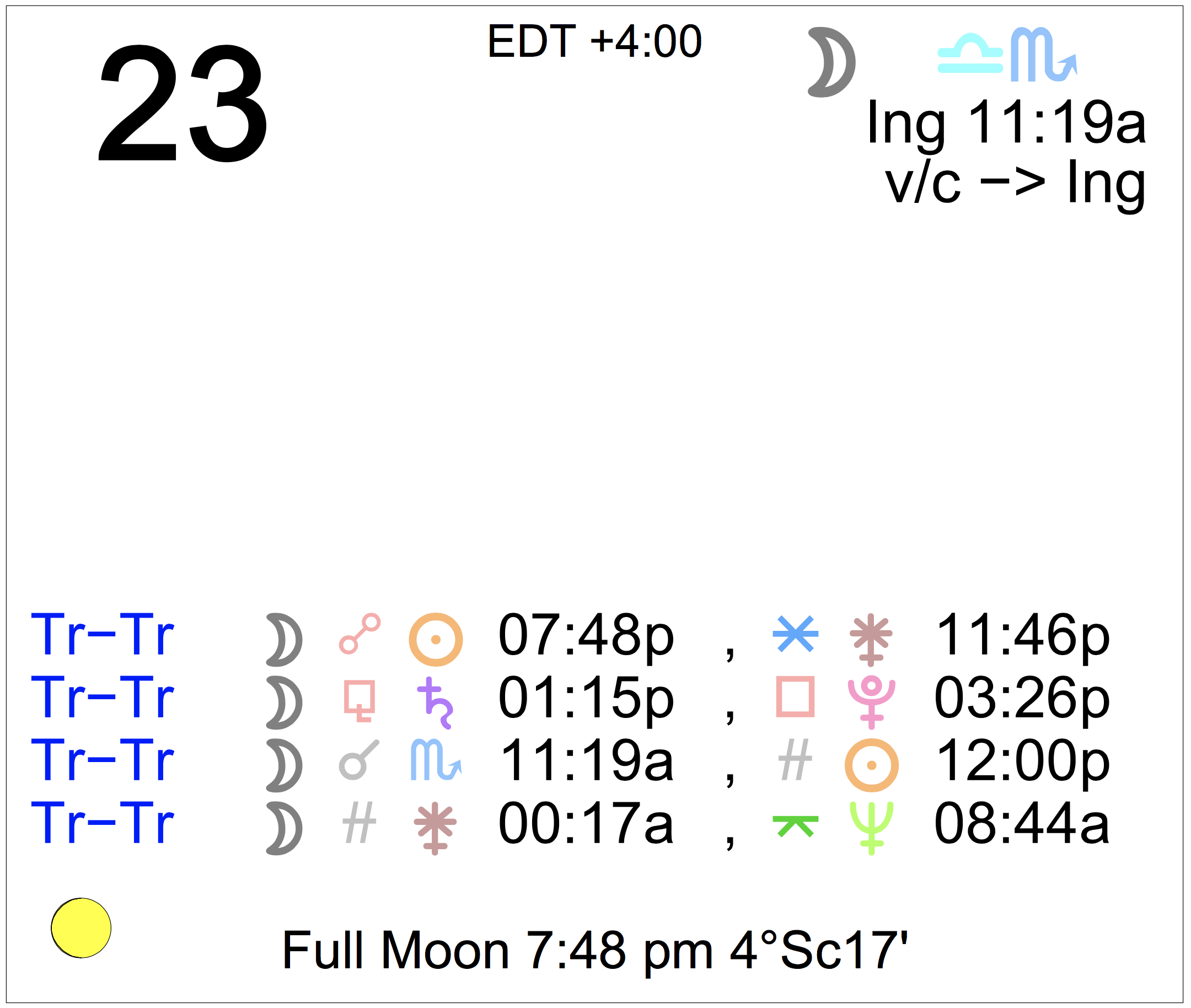 - The Full Moon occurs today at 7:48 PM in the sign of Scorpio.