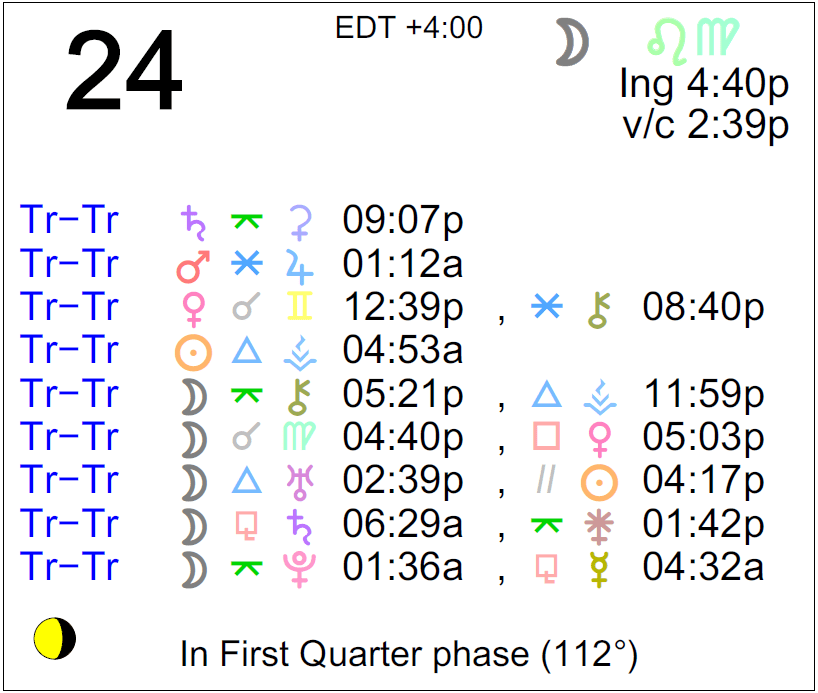 The Moon is in Leo until 4:40 PM, after which the Moon is in Virgo.- The Moon is void from 2:39 PM to 4:40 PM.