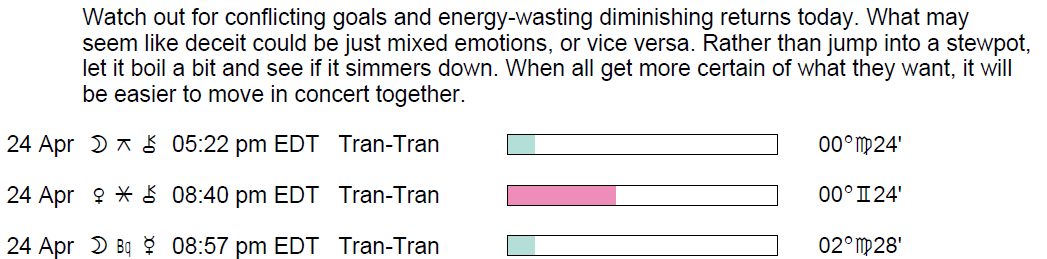 **Conjunctions to Select Fixed Stars on April 24, 2018.**