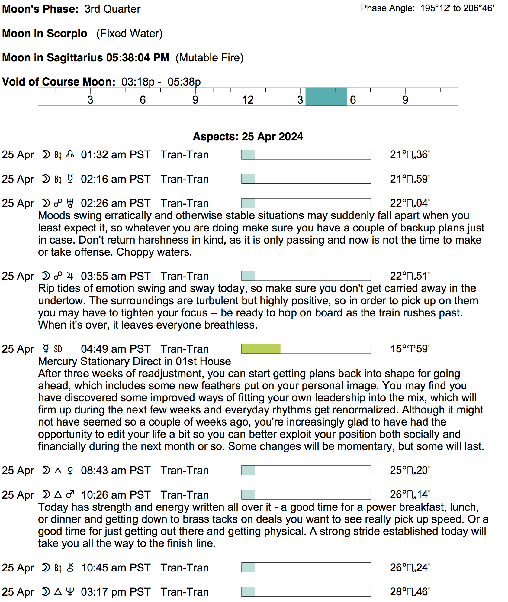 If you’re astrologically inclined and interested in the details of the Astrology of today, here are some of the factors considered in the forecasts: