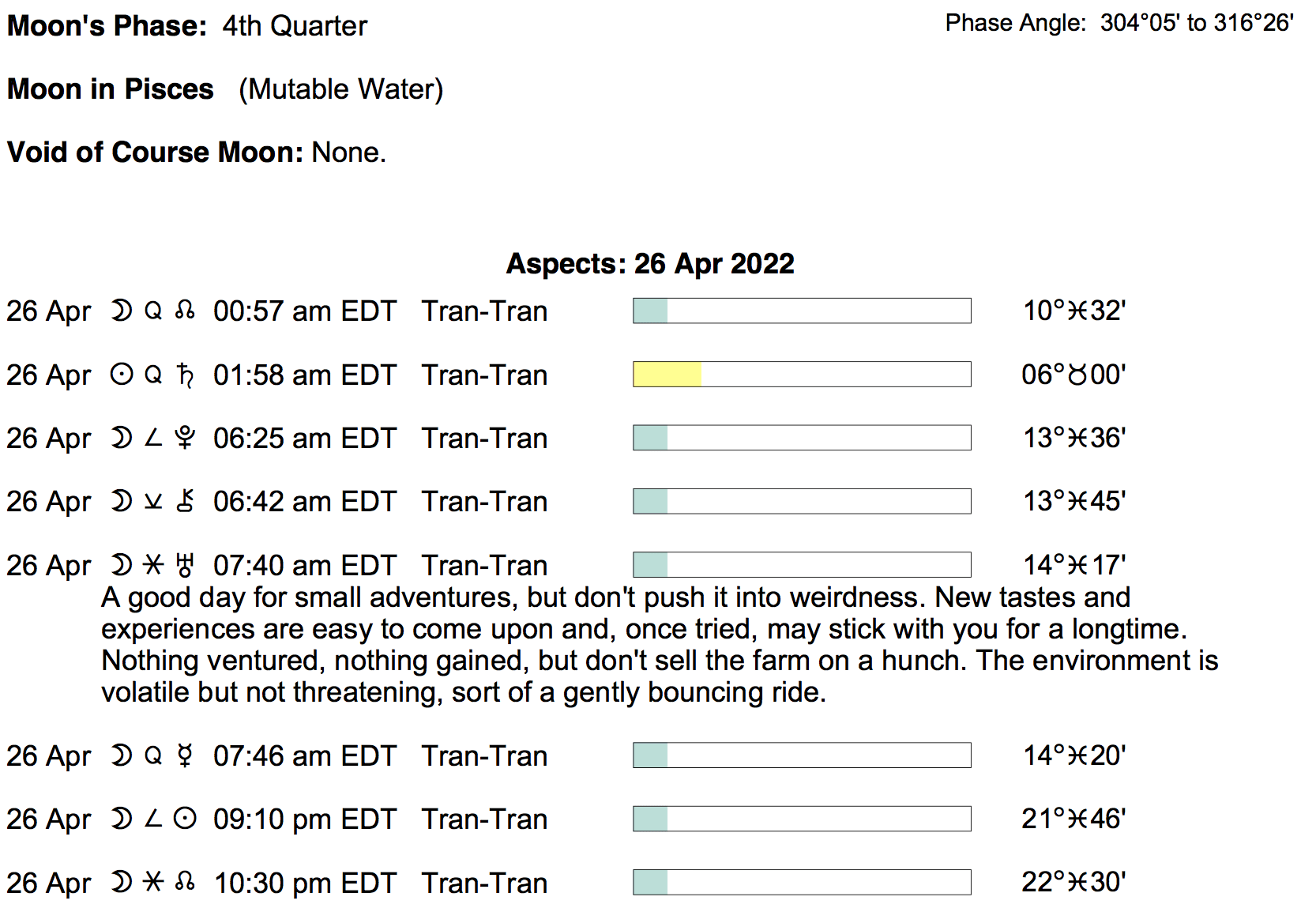 If you’re astrologically inclined and interested in the details of the Astrology of today, here are some of the factors considered in the forecasts: