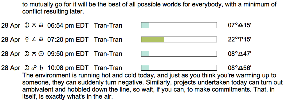 If you’re astrologically inclined and interested in the details of the Astrology of today, here are some of the factors considered in the forecasts: