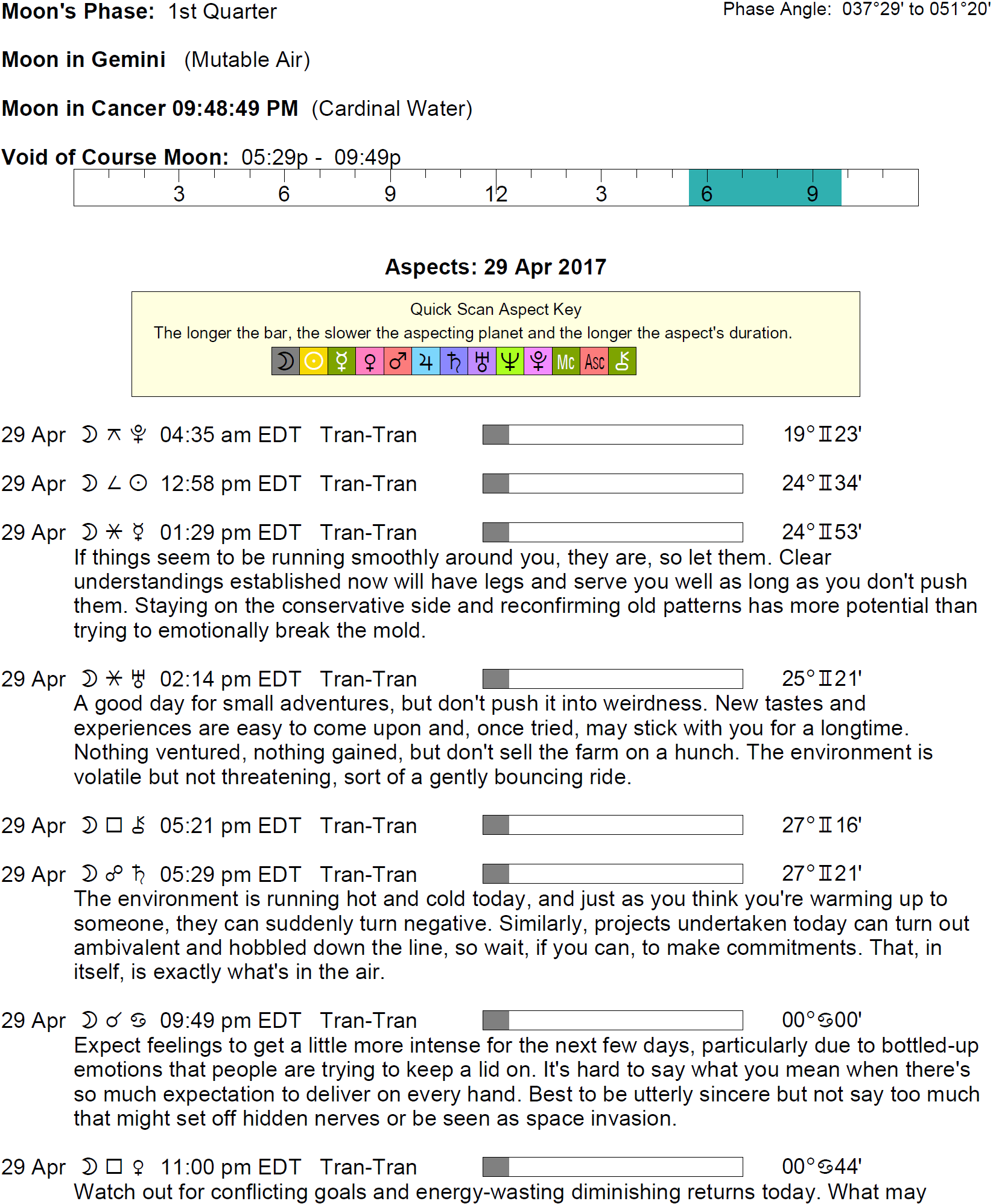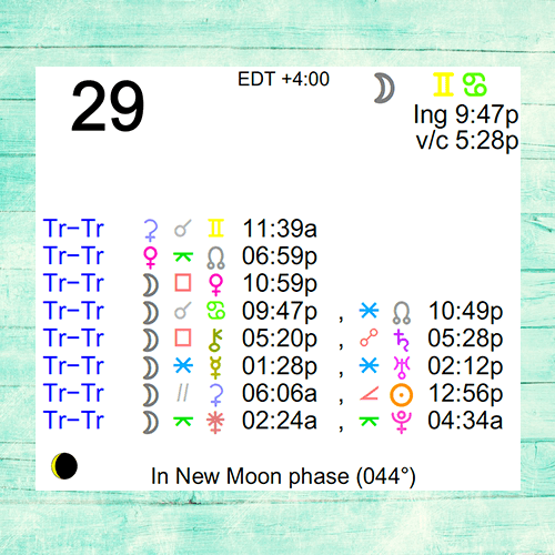 - The Moon is in Gemini until 9:47 PM, after which the Moon is in Cancer.