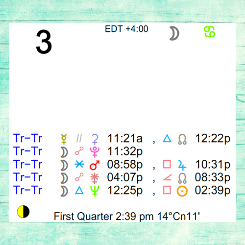 **I suggest paying close attention to applying aspects. The energy of the aspect builds as it gets closer to exact. Once an aspect involving inner planets has happened, it’s over. Separating aspects are good to know for context, but in terms of energy that is with us today, applying aspects are most important. (This is the case for daily astrology influences involving inner planets, which pass quickly, and not natal astrology aspects, which are with us for a lifetime).