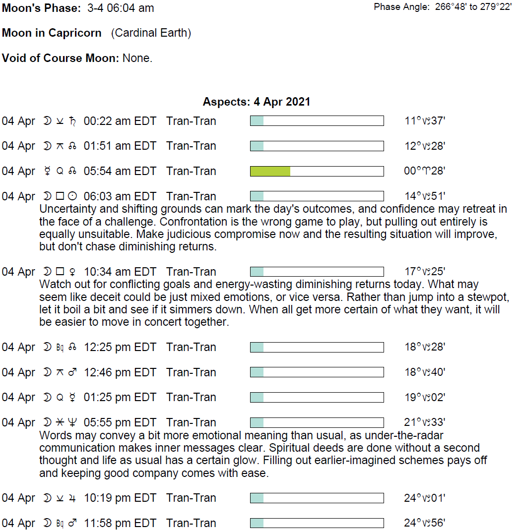 If you’re astrologically inclined and interested in the details of the Astrology of today, here are some of the factors considered in the forecasts: