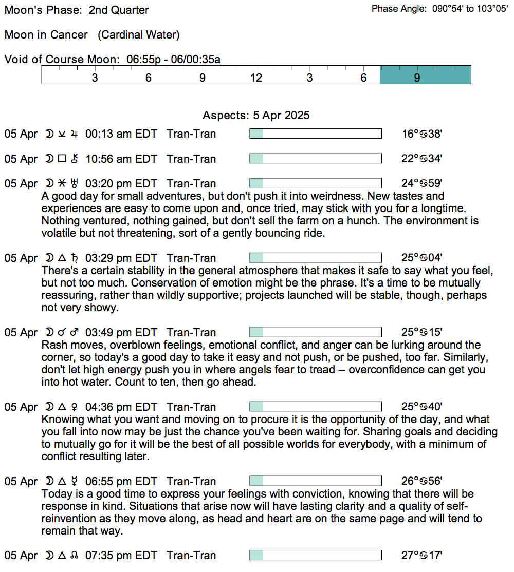 If you’re astrologically inclined and interested in the details of the Astrology of today, here are some of the factors considered in the forecasts: