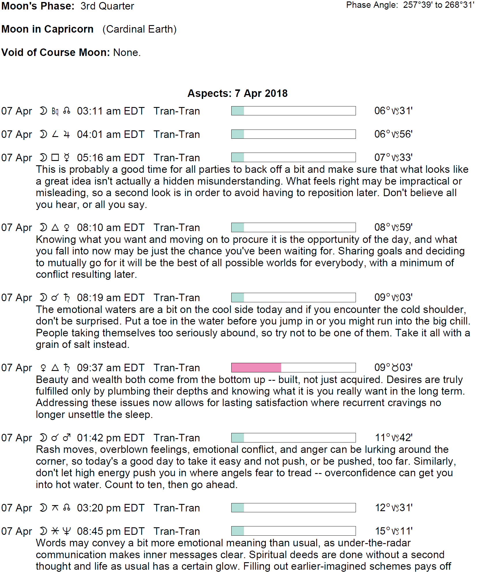 **Conjunctions to Select Fixed Stars on April 7, 2018.**