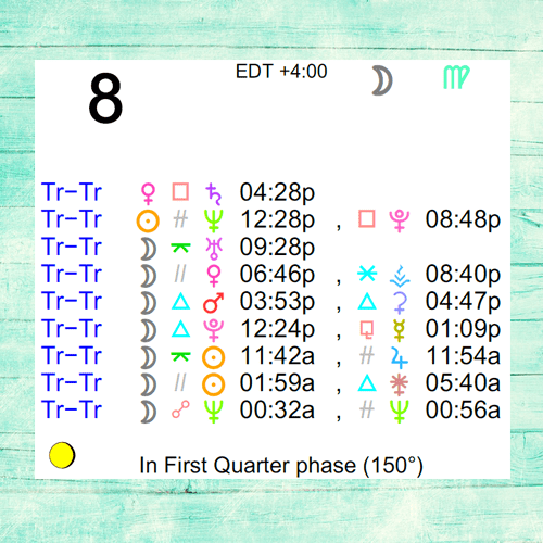 We crave organization and order, and are quickly disturbed by anything standing in the way of these things. This is a good time for chores, organizing, and tidying. It’s also a time for scheduling health appointments and checkups, starting new routines, and generally tending to details.