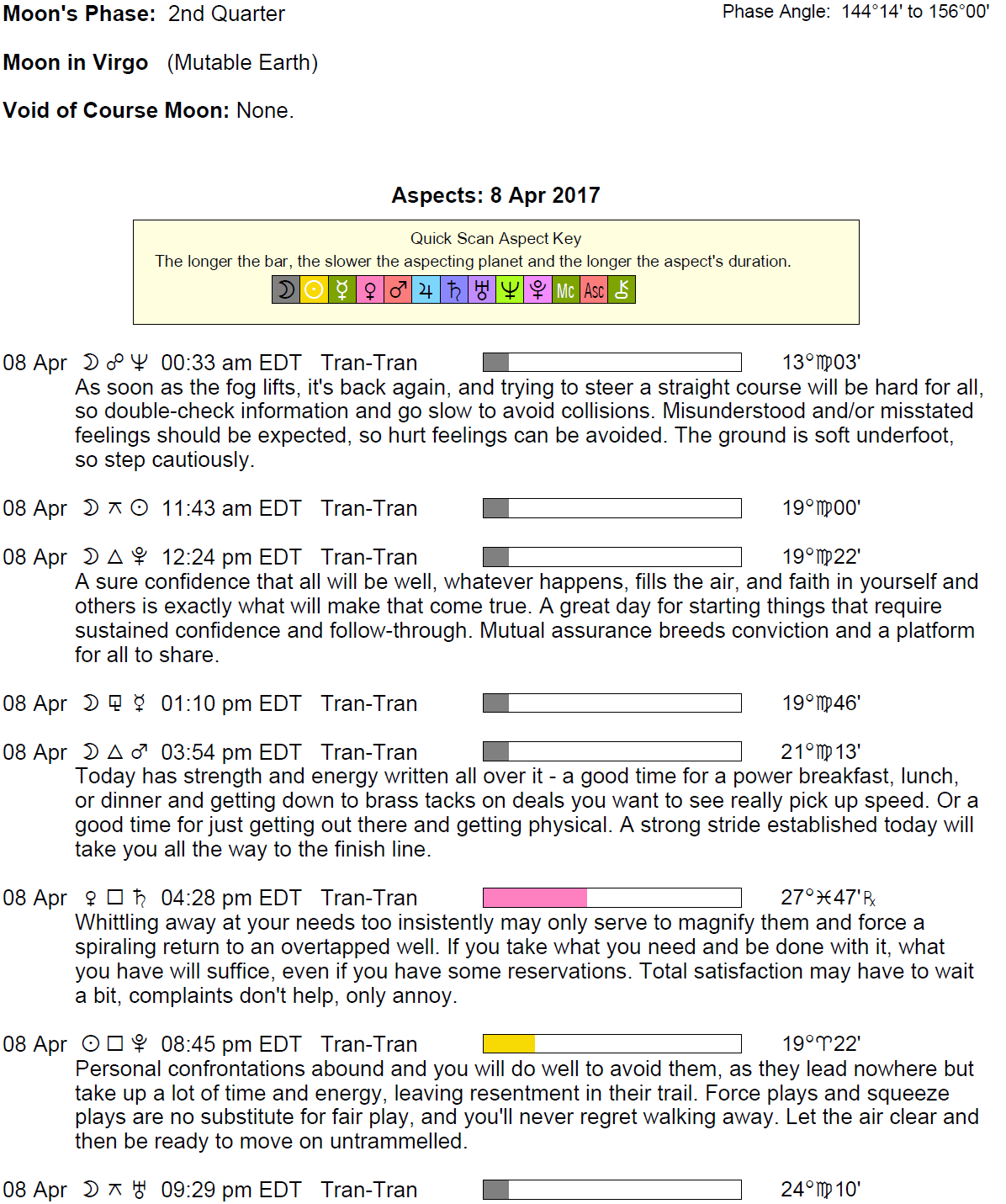 If you’re astrologically inclined and interested in the details of the Astrology of today, here are some of the factors considered in the forecasts: