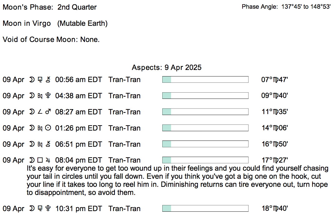 If you’re astrologically inclined and interested in the details of the Astrology of today, here are some of the factors considered in the forecasts: