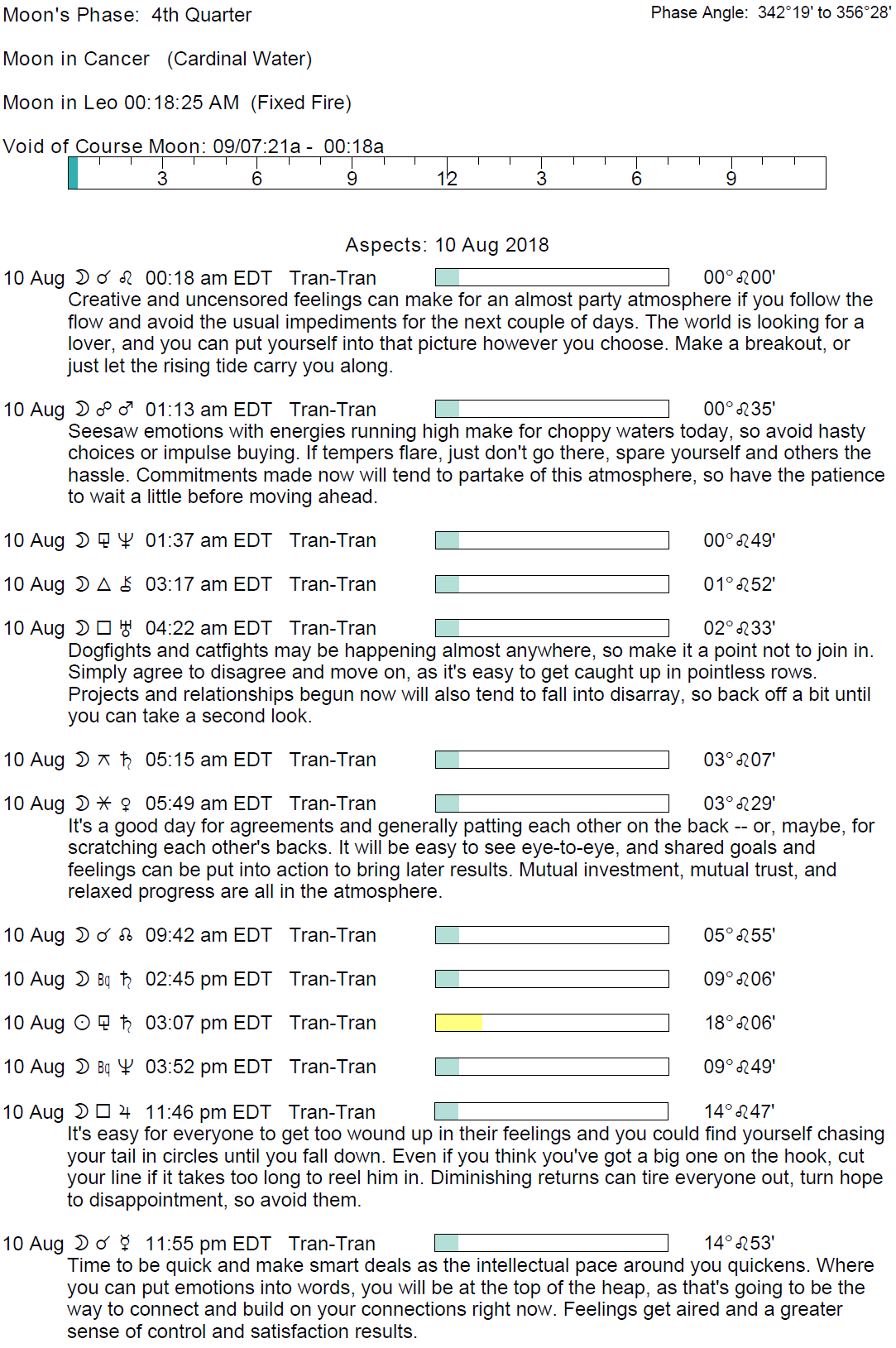 **Conjunctions to Select Fixed Stars on August 10, 2018.**