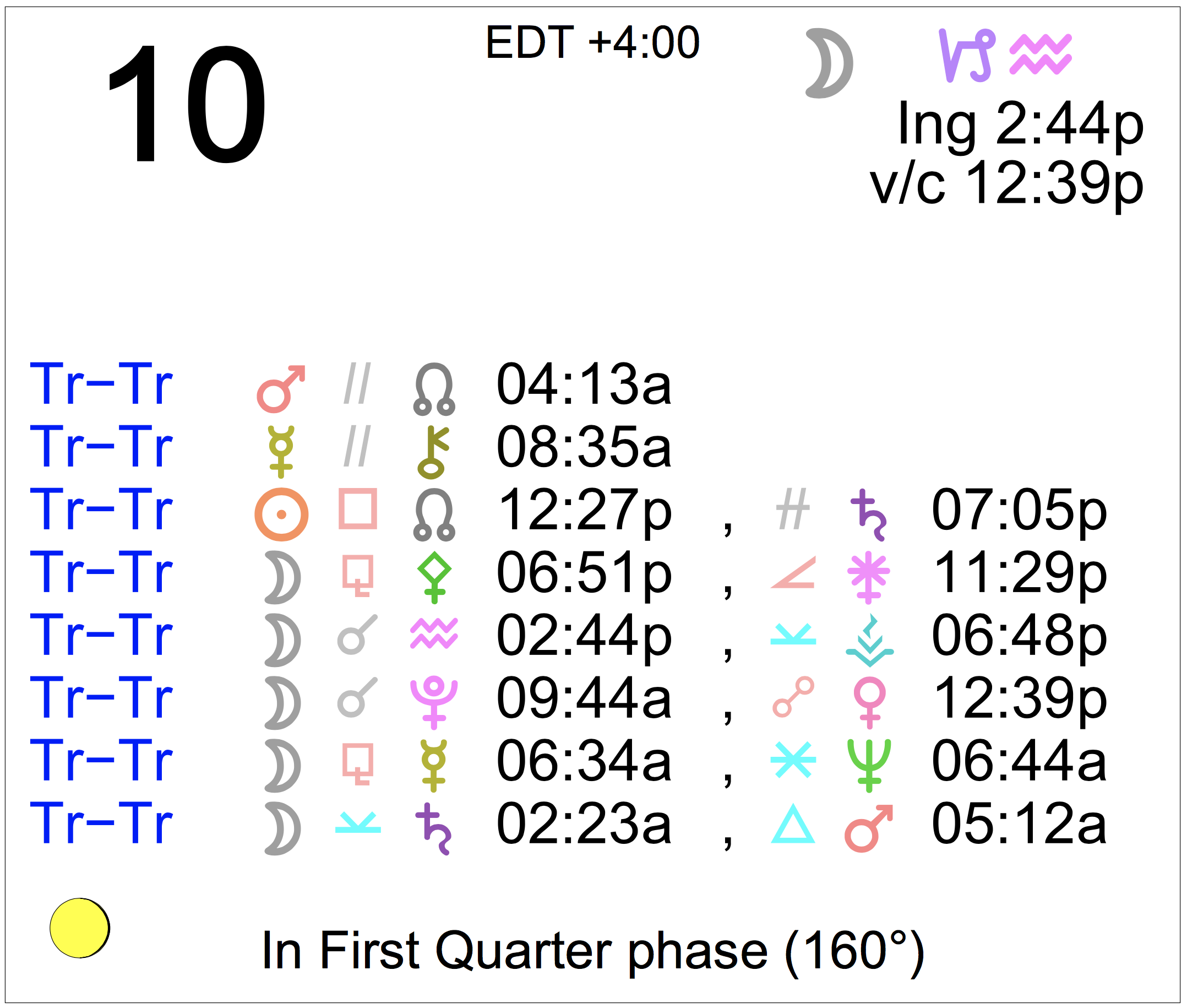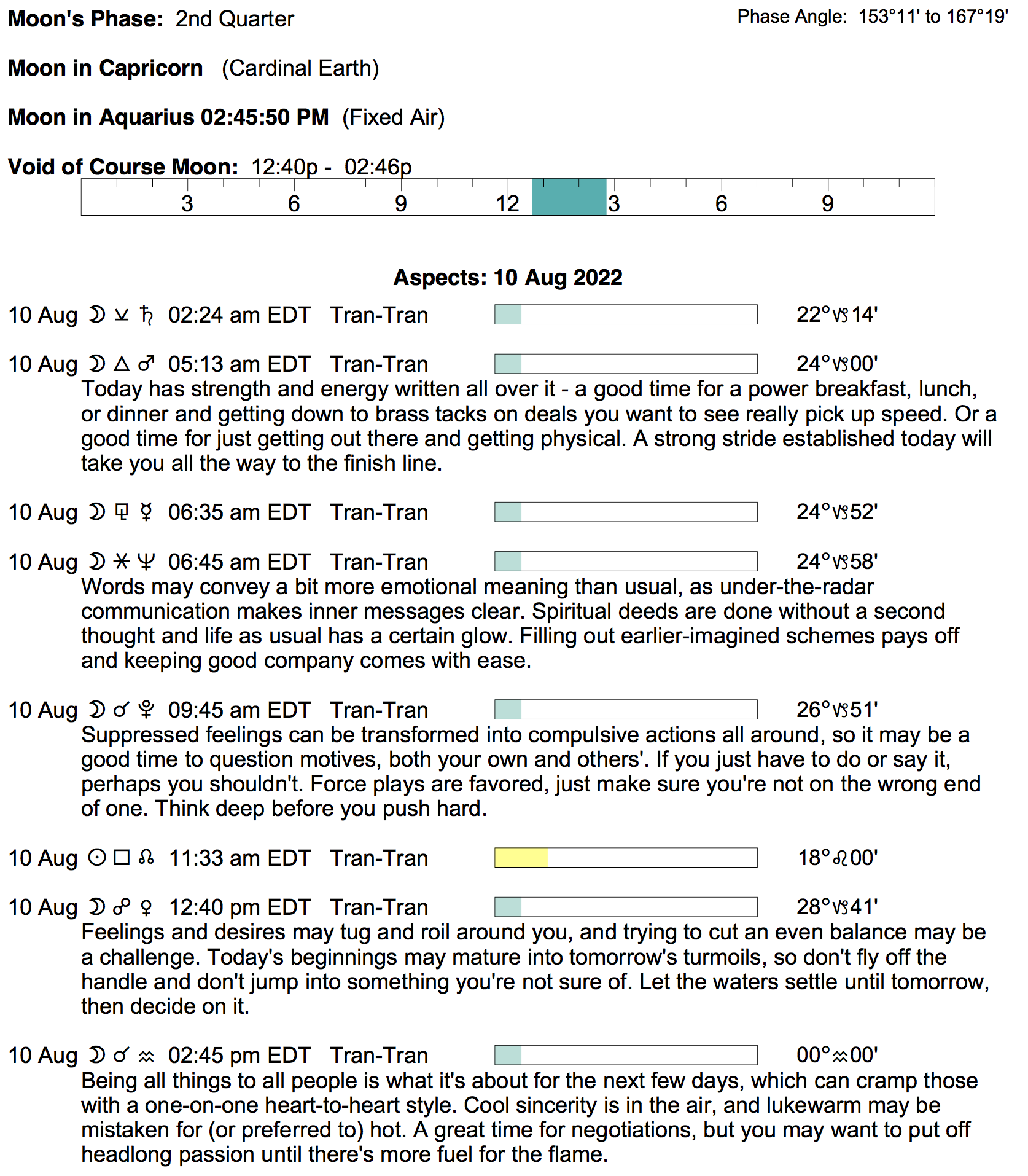 - A void Moon period occurs today from 12:39 PM to 2:44 PM.