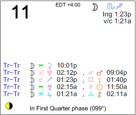 The following aspects (major only) and positions are at noon (EDT) on August 11th: