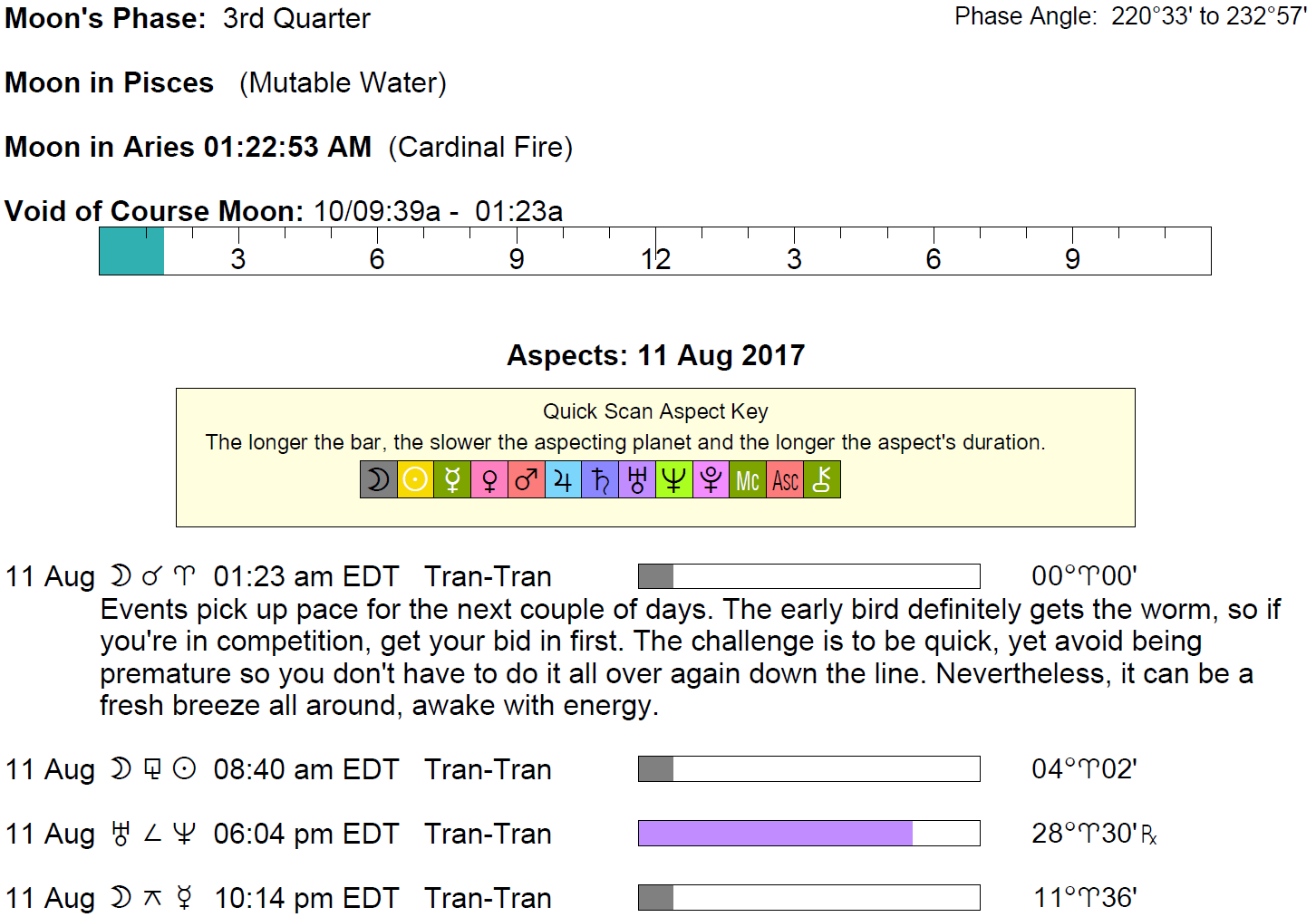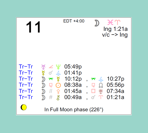 The following aspects (major only) and positions are at noon (EDT) on August 11th: