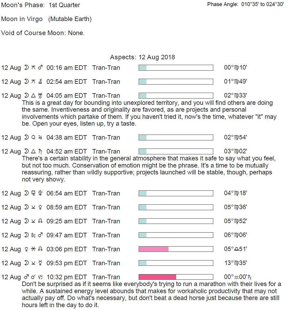 **Conjunctions to Select Fixed Stars on August 12, 2018.**