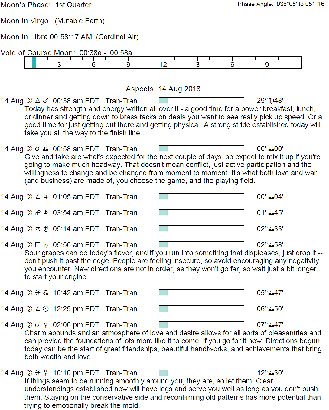 **Conjunctions to Select Fixed Stars on August 14, 2018.**