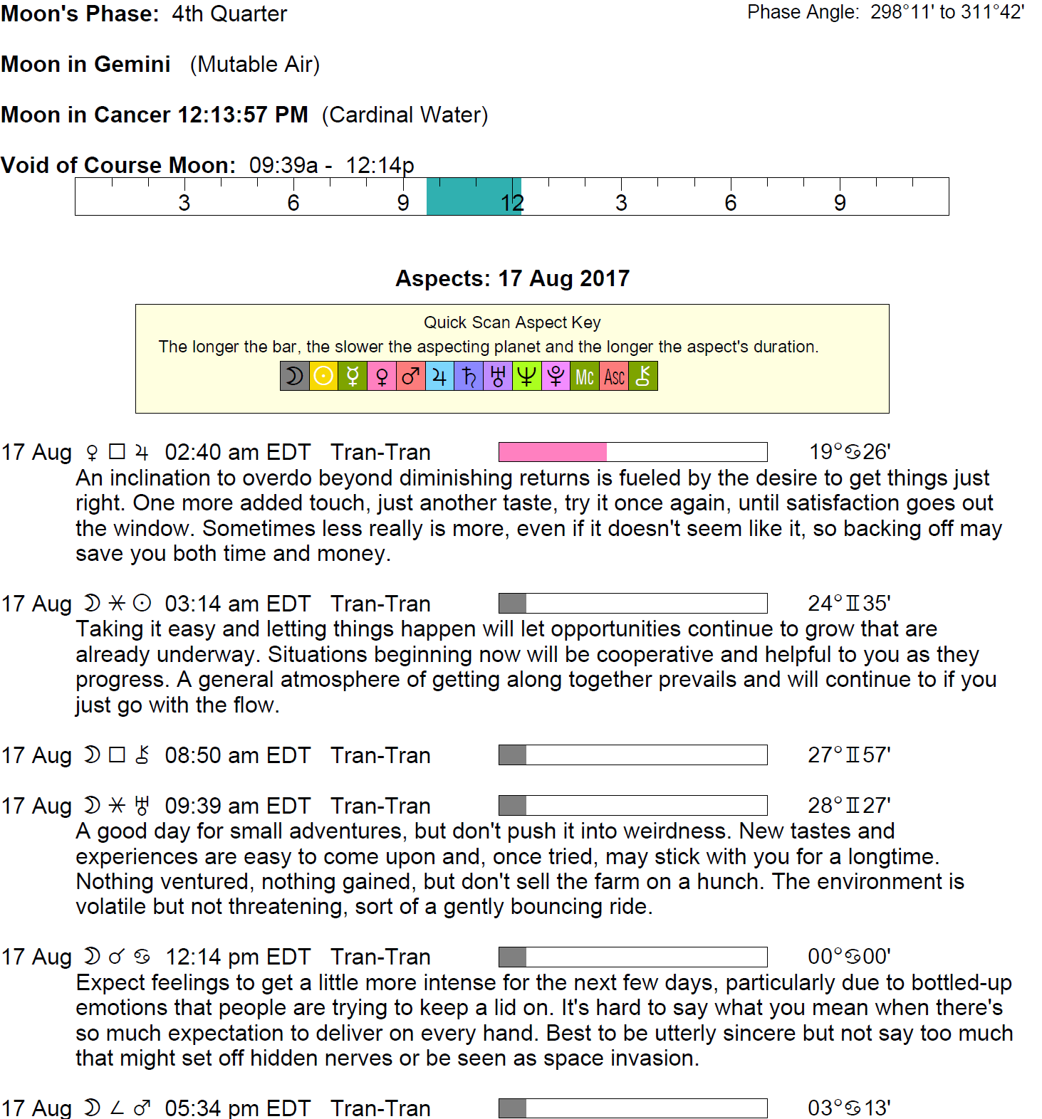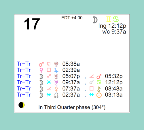 The following aspects (major only) and positions are at noon (EDT) on August 17th: