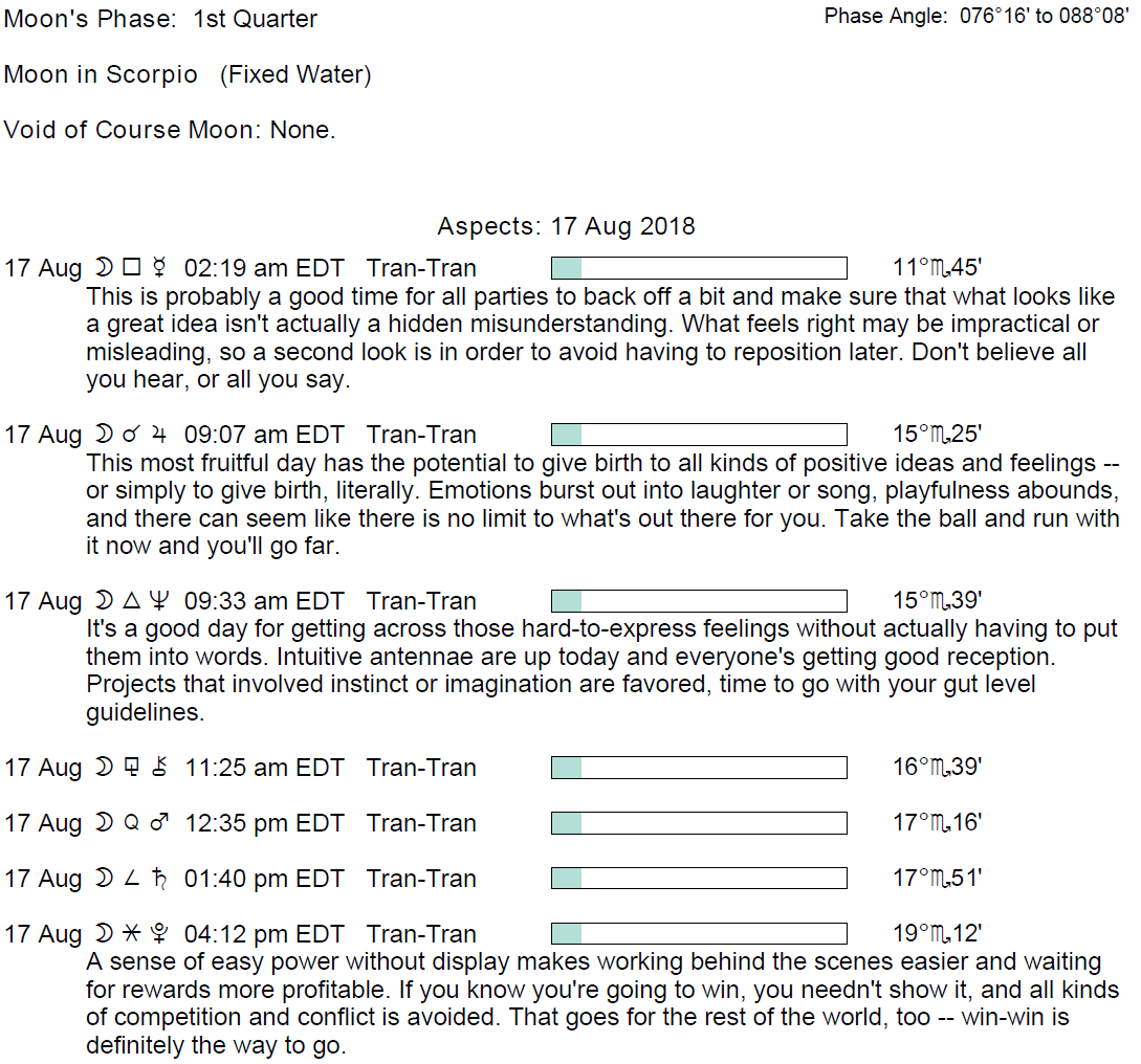 **Conjunctions to Select Fixed Stars on August 17, 2018.**