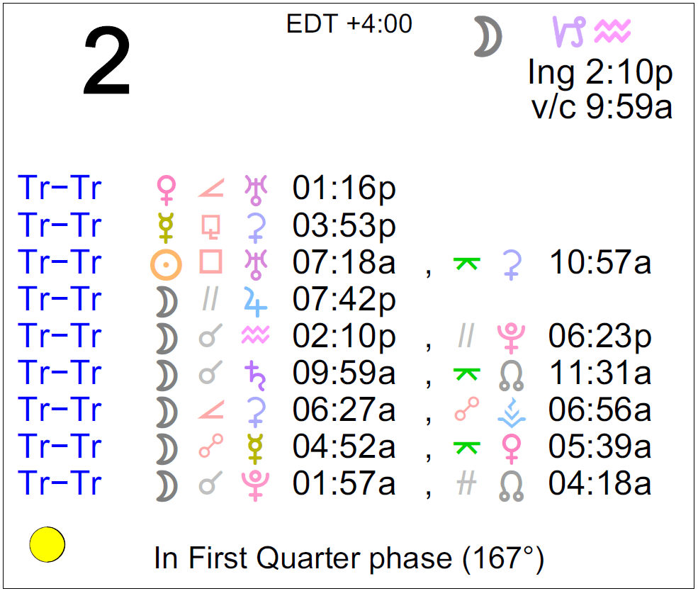 - A void Moon occurs today from 9:59 AM to 2:10 PM.
