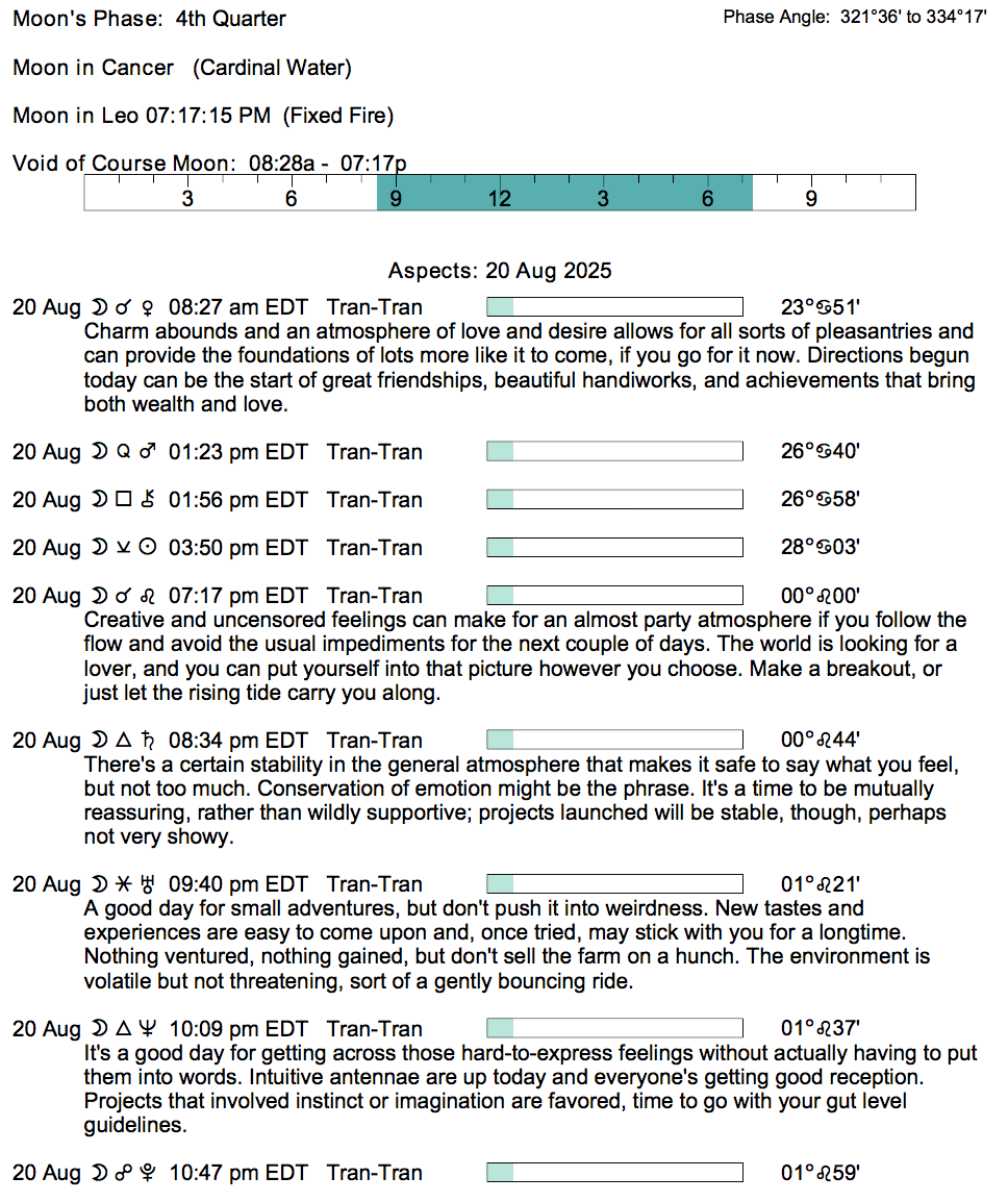 If you’re astrologically inclined and interested in the details of the Astrology of today, here are some of the factors considered in the forecasts: