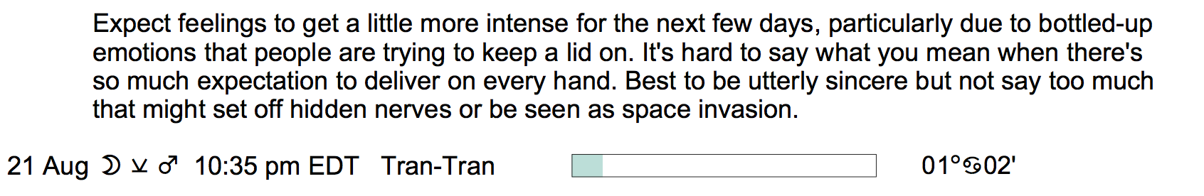 If you’re astrologically inclined and interested in the details of the Astrology of today, here are some of the factors considered in the forecasts: