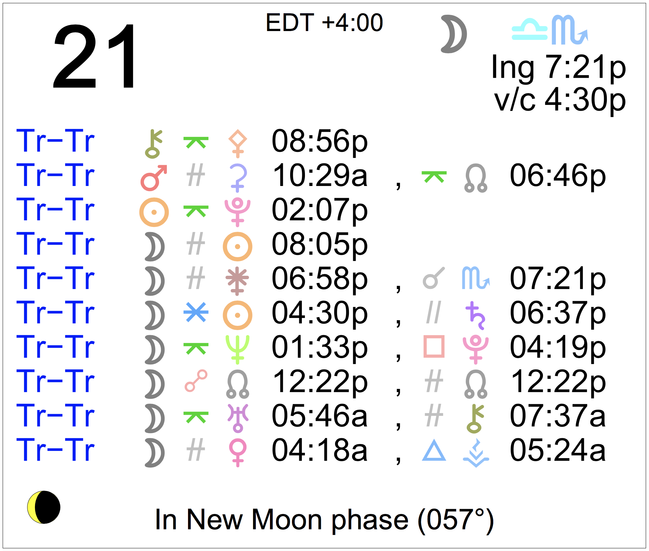 - A void Moon period occurs from 4:30 PM to 7:21 PM today.