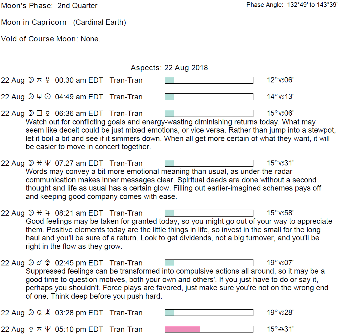 **Conjunctions to Select Fixed Stars on August 22, 2018.**