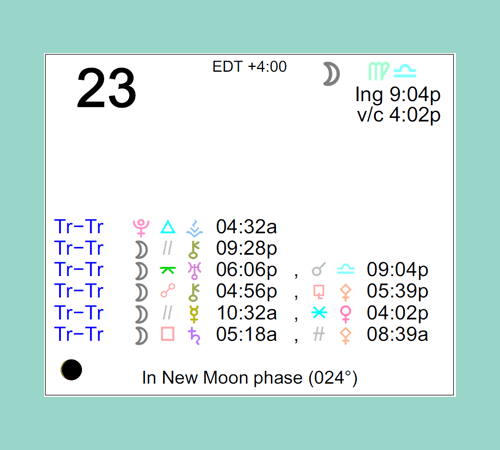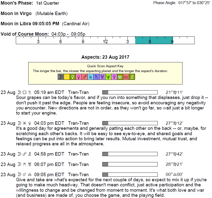 The following aspects (major only) and positions are at noon (EDT) on August 23rd: