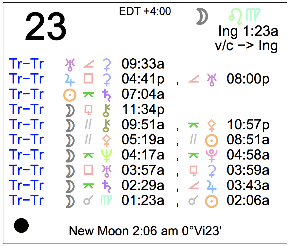 - The New Moon occurs at 2:06 AM today early in the sign of Virgo.
