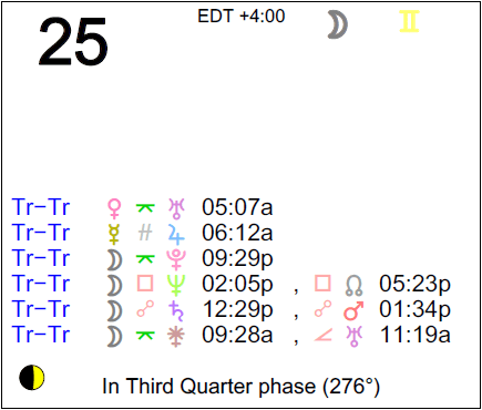 The following aspects (major only) and positions are at noon (EDT) on August 25th: