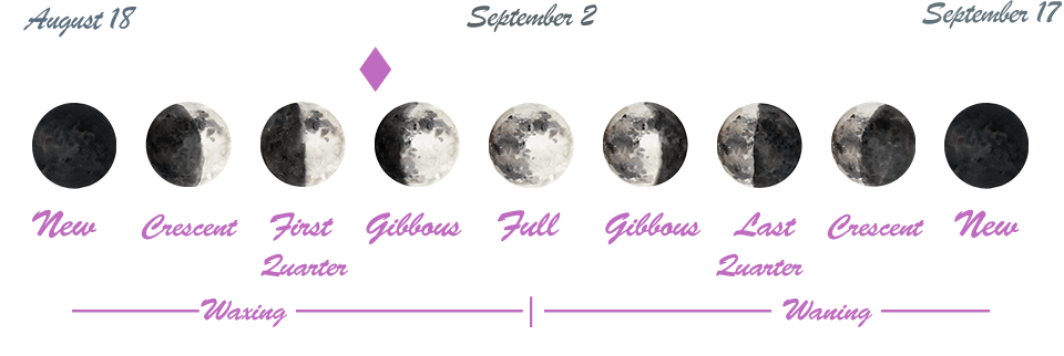 - The First Quarter Moon occurred on the 25th, and the Full Moon will occur on September 2nd.