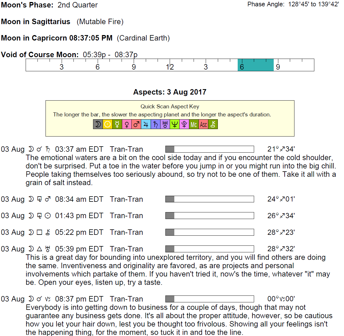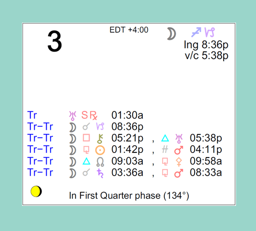 The following aspects (major only) and positions are at noon (EDT) on August 3rd: