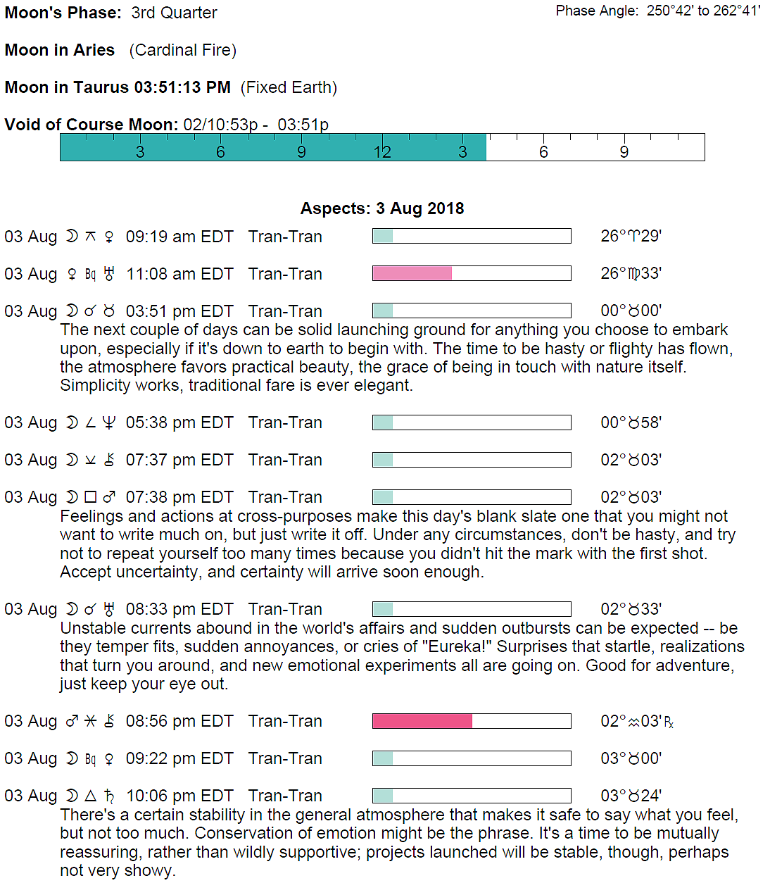 **Conjunctions to Select Fixed Stars on August 3, 2018.**